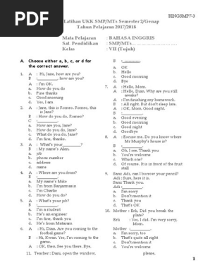 Soal Latihan Ukk Smp Mts Semester 2 Genap Tahun Pelajaran 2017 2018 Mata Pelajaran Bahasa Inggris Sat Pendidikan Smp Mts Kelas Vii Tujuh Room Home
