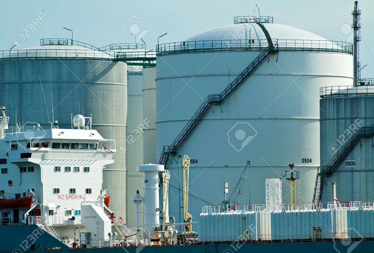 Oil Tanker Bringing Its Cargo In A Tank Storage Facility Stock Image Image Of Gulf Energy 124594117